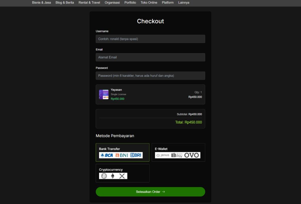 - Klik tombol ‘Selesaikan Order’